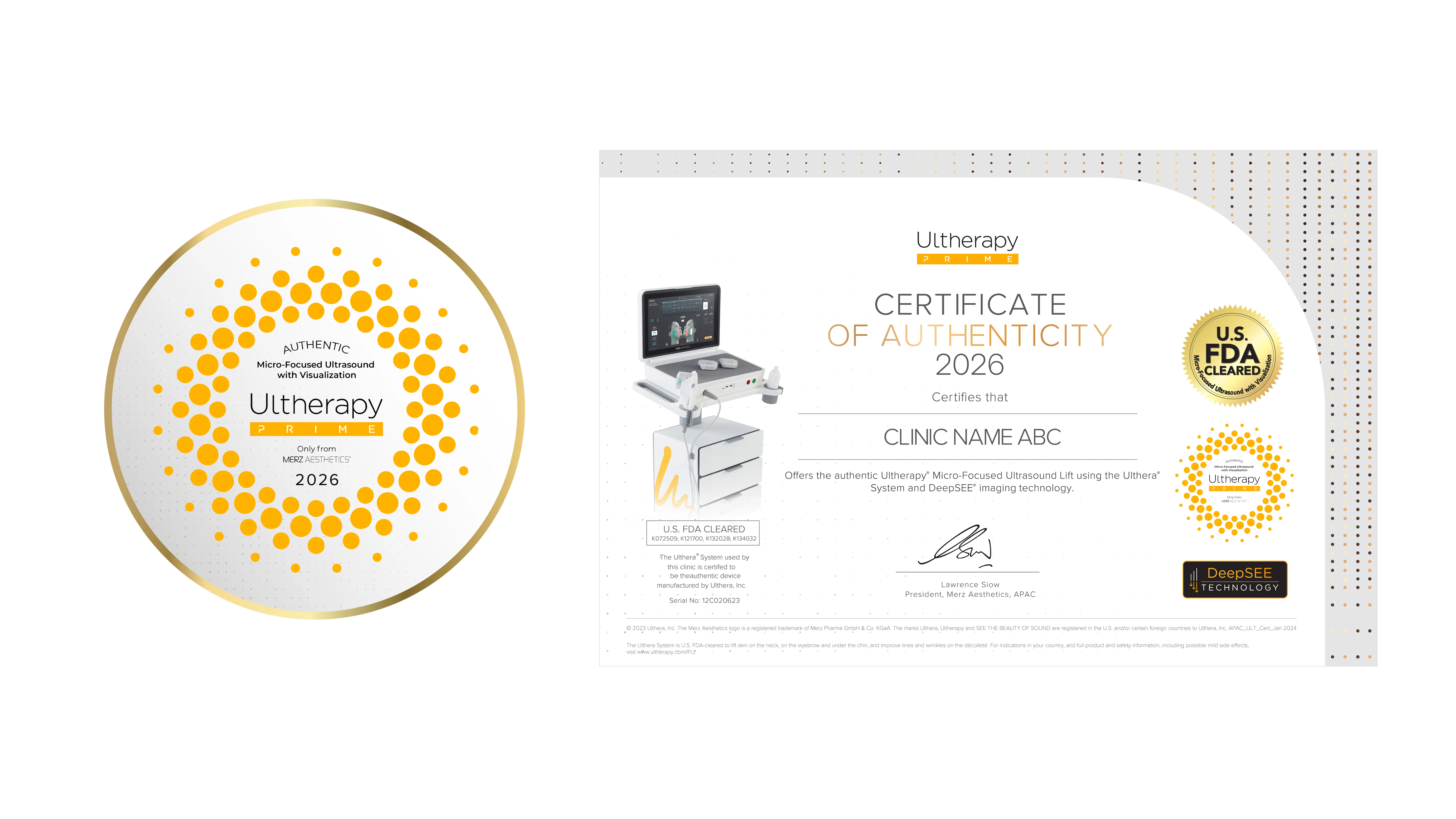 Ultherapy PRIME seal and certificate.
